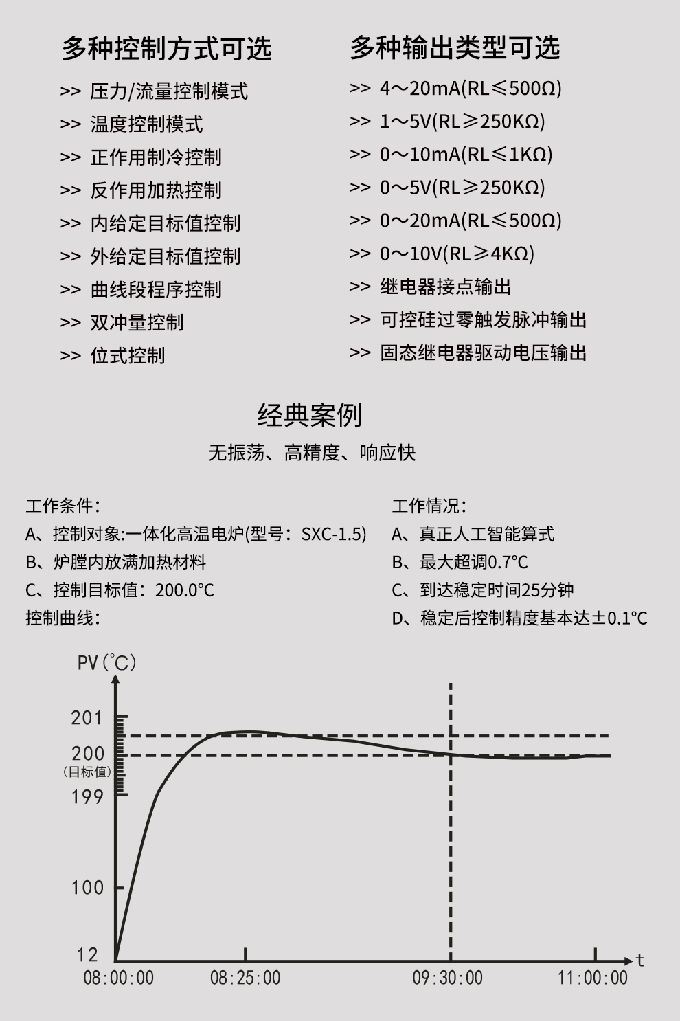 虹潤(rùn)公司是專業(yè)生產(chǎn)溫控器的國(guó)家專精特新“小巨人”企業(yè)。生產(chǎn)的彩色調(diào)節(jié)無(wú)紙記錄儀,具有8路PID獨(dú)立控制,真正人工智能算式,無(wú)需人工整定參數(shù),控制精度達(dá)士0.1°C,支持以太網(wǎng)/RS485通訊輸出等特點(diǎn)。產(chǎn)品獲得智能化控制器、人工智能調(diào)節(jié)器及調(diào)節(jié)方法、模糊PID控制儀及控制方法、一種平板無(wú)紙記錄儀、巡回檢測(cè)顯示方法及裝置等5項(xiàng)國(guó)家發(fā)明專利,主持起草物聯(lián)網(wǎng)智能記錄儀表通用技術(shù)條件、物聯(lián)網(wǎng)智能溫度儀表通用技術(shù)條件、工業(yè)過(guò)程測(cè)量和控制系統(tǒng)用智能調(diào)節(jié)器等3項(xiàng)國(guó)家標(biāo)準(zhǔn),通信系統(tǒng)多通道數(shù)據(jù)采集控制終端規(guī)范軍用標(biāo)準(zhǔn),以及空間數(shù)據(jù)與信息數(shù)據(jù)傳輸系統(tǒng)等2項(xiàng)航天標(biāo)準(zhǔn)。參與國(guó)際5G標(biāo)準(zhǔn)制定,取得液晶數(shù)據(jù)采集無(wú)紙記錄儀等4項(xiàng)相關(guān)軟件著作權(quán)。產(chǎn)品廣泛應(yīng)用于電石化、工業(yè)爐、試驗(yàn)設(shè)備、注塑機(jī)械、包裝機(jī)械等需要對(duì)現(xiàn)場(chǎng)溫度進(jìn)行監(jiān)測(cè)控制的行業(yè)。