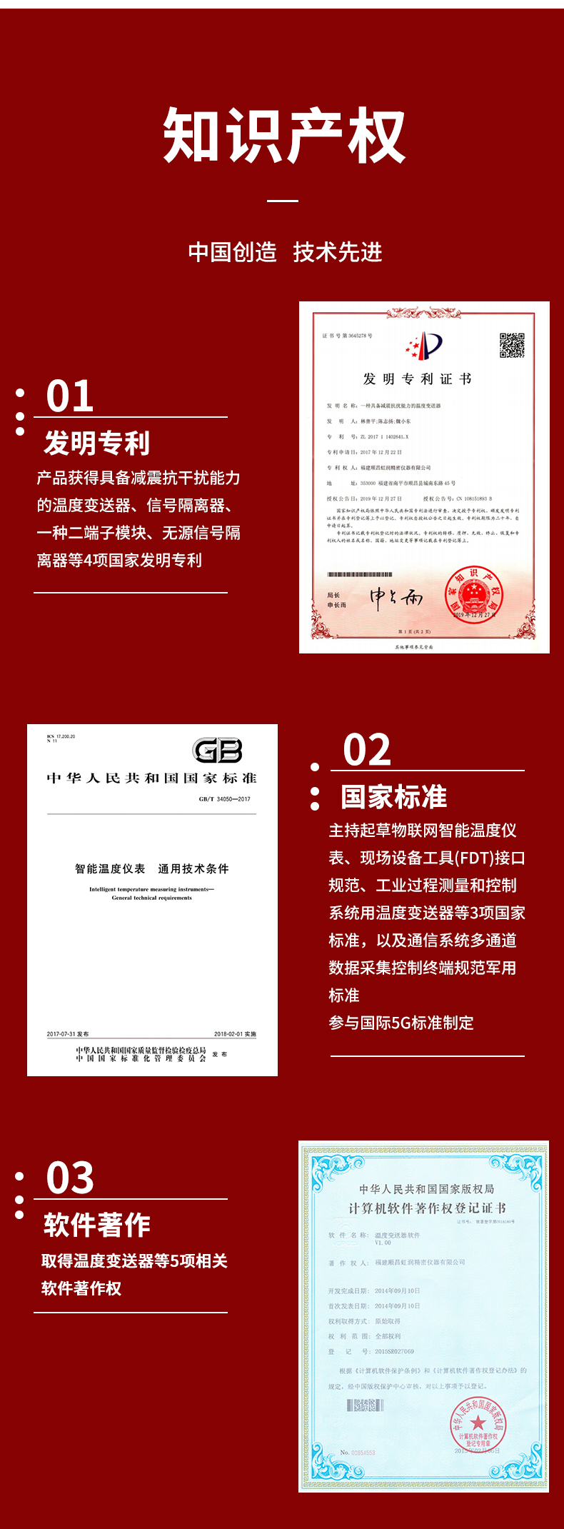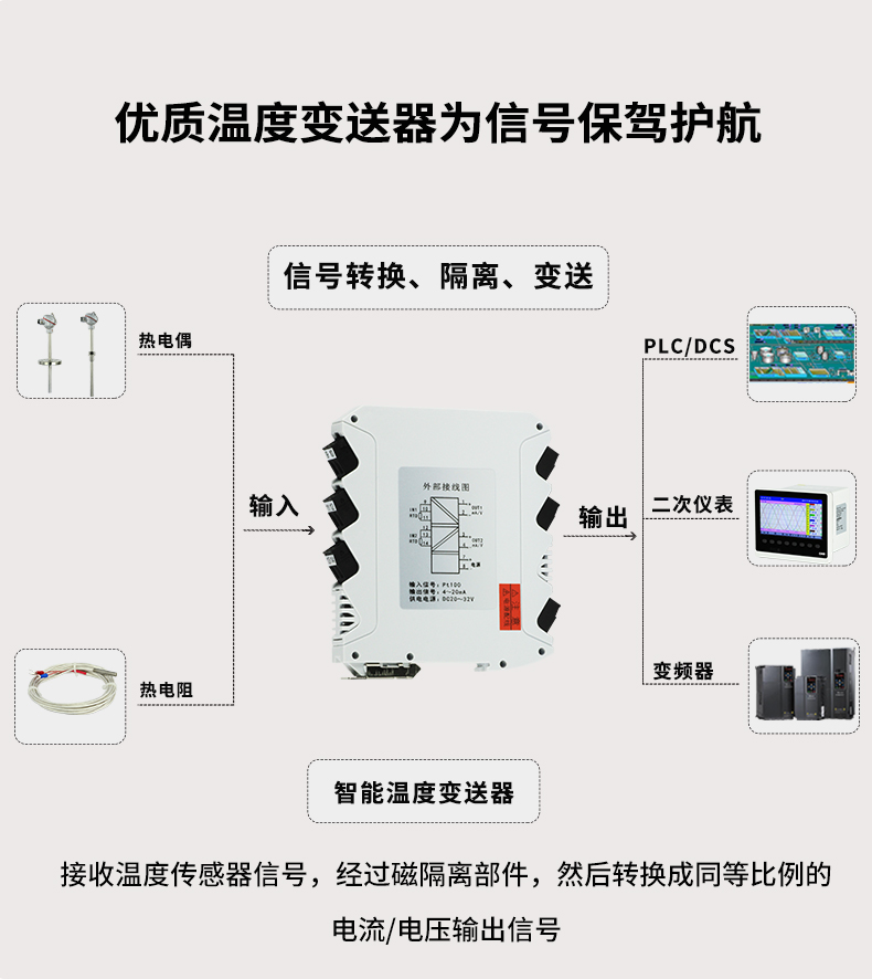 虹潤公司是專業(yè)生產(chǎn)溫度變送器的國家專精特新“小巨人”企業(yè)。生產(chǎn)的溫度變送器,具有采用磁隔離技術(shù),配套編程器可修改參數(shù),抗干擾能力強,穩(wěn)定性好,帶RS485或HART通訊等特點。該產(chǎn)品不僅通過HART基金會認(rèn)證、德國萊茵 CE 認(rèn)證與 SIL 功能安全認(rèn)證,還獲得具備減震抗干擾能力的溫度變送器、信號隔離器、一種二端子模塊、無源信號隔離器等4項國家發(fā)明專利,主持起草物聯(lián)網(wǎng)智能溫度儀表、現(xiàn)場設(shè)備工具(FDT)接口規(guī)范、工業(yè)過程測量和控制系統(tǒng)用溫度變送器等3項國家標(biāo)準(zhǔn),以及通信系統(tǒng)多通道數(shù)據(jù)采集控制終端規(guī)范軍用標(biāo)準(zhǔn),參與國際5G標(biāo)準(zhǔn)制定,取得溫度變送器等5項相關(guān)軟件著作權(quán)。產(chǎn)品廣泛應(yīng)用于石油、電力、化工,冶金、制藥、紡織、橡膠制造等工業(yè)領(lǐng)域現(xiàn)場自動化測溫過程。