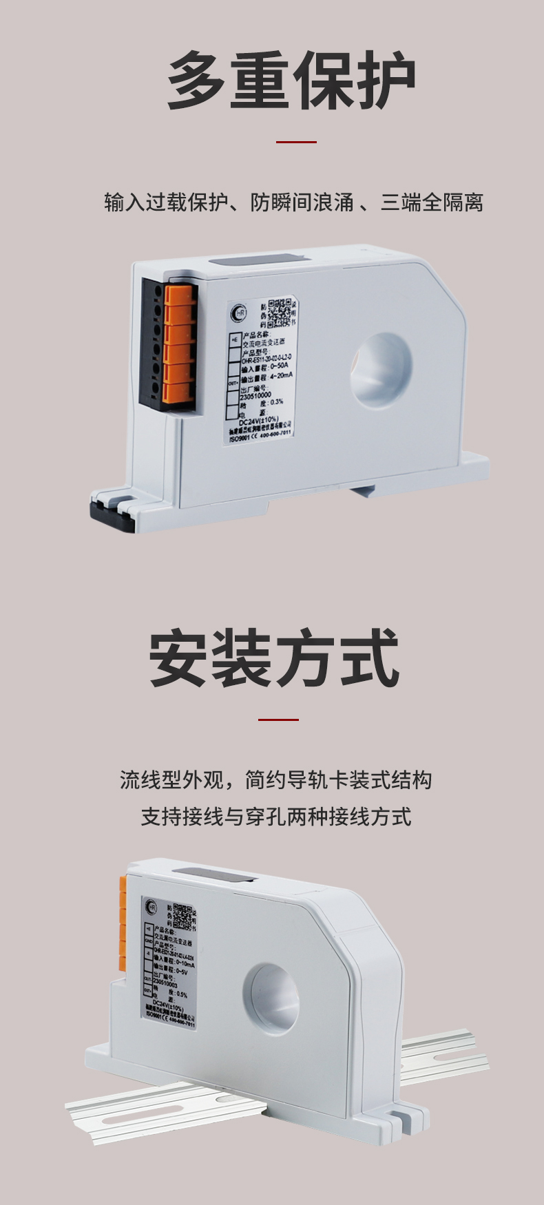 虹潤(rùn)公司是專業(yè)生產(chǎn)電流傳感器的國(guó)家專精特新“小巨人”企業(yè)。生產(chǎn)的交流電壓/電流變送器,具有交流電壓/電流輸入、高精準(zhǔn)測(cè)量、響應(yīng)速度快、高抗干擾、全隔離設(shè)計(jì)等特點(diǎn)。產(chǎn)品獲得一種交流信號(hào)變送器、交直流信號(hào)轉(zhuǎn)換電路、基于DCS技術(shù)的盤(pán)裝式三相電量表等3項(xiàng)國(guó)家發(fā)明專利,主持起草工業(yè)過(guò)程控制系統(tǒng)用模擬輸入兩位或多位輸出儀表國(guó)家標(biāo)準(zhǔn),直流漏電流傳感器規(guī)范、通信系統(tǒng)多通道數(shù)據(jù)采集控制終端規(guī)范等2項(xiàng)軍用標(biāo)準(zhǔn),以及現(xiàn)場(chǎng)設(shè)備集成等5項(xiàng)智能制造國(guó)家標(biāo)準(zhǔn),參與國(guó)際5G標(biāo)準(zhǔn)制定。產(chǎn)品廣泛應(yīng)用于工業(yè)自動(dòng)化、電力、新能源、科研實(shí)驗(yàn)基礎(chǔ)設(shè)施等需要電力參數(shù)監(jiān)測(cè)的領(lǐng)域。