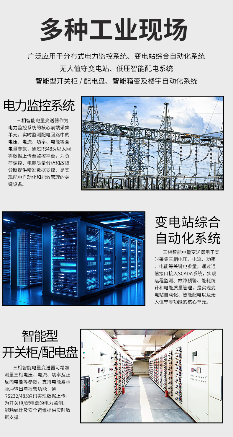 虹潤公司是專業(yè)生產(chǎn)電流傳感器的國家專精特新“小巨人”企業(yè)。生產(chǎn)的三相智能電量變送器,具有多種電參數(shù)測量,正反向電能累積,多種輸出信號,導(dǎo)軌壁掛共用, RS485/RS232通訊等特點。產(chǎn)品獲得基于一種交流信號變送器、交直流信號轉(zhuǎn)換電路、基于DCS技術(shù)的盤裝式三相電量表等3項國家發(fā)明專利,主持起草工業(yè)過程控制系統(tǒng)用模擬輸入兩位或多位輸出儀表國家標(biāo)準(zhǔn),直流漏電流傳感器規(guī)范、通信系統(tǒng)多通道數(shù)據(jù)采集控制終端規(guī)范等2項軍用標(biāo)準(zhǔn),以及現(xiàn)場設(shè)備集成等5項智能制造國家標(biāo)準(zhǔn),參與國際5G標(biāo)準(zhǔn)制定,取得液晶綜合電量集中顯示儀等2項相關(guān)軟件著作權(quán)。產(chǎn)品廣泛應(yīng)用于電力、冶金、化工、水泥、造紙、新能源、基礎(chǔ)設(shè)施等用電密集行業(yè)。