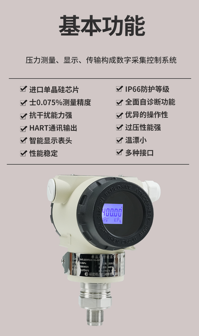 虹潤公司是專業(yè)生產(chǎn)壓力變送器的國家專精特新“小巨人”企業(yè),生產(chǎn)的單晶硅壓力變送器,具有高精度,小溫漂,性能穩(wěn)定,帶HART通訊,抗干擾能力強,自診斷功能等特點。產(chǎn)品獲得一種數(shù)字顯示低功耗壓力表、一種信號發(fā)生器裝置等2項國家發(fā)明專利,主持起草工業(yè)過程控制系統(tǒng)用模擬輸入兩位或多位輸出儀表、工業(yè)過程測量和控制系統(tǒng)用壓力/差壓變送器等2項國家標準,通信系統(tǒng)多通道數(shù)據(jù)采集控制終端規(guī)范軍用標準,以及現(xiàn)場設(shè)備集成等5項智能制造國家標準。參與國際5G標準制定,取得數(shù)顯壓力表等2項相關(guān)軟件著作權(quán)。產(chǎn)品廣泛應(yīng)用于化工、食品、制藥、電力、設(shè)備配套、供暖、水處理、樓宇等行業(yè),需精準測量流體壓力的現(xiàn)場。